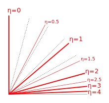 A boost of velocity along the beam-axis of velocity corresponds to an additive change in rapidity of using the relation . Under such a Lorentz transformation, the rapidity of a particle will become and the four-momentum becomes