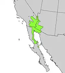 To the west in Baja California it borders the western Gulf of California; it occurs on the islands there including Isla Ángel de la Guarda, but not Tiburon Island.[1] To the east in Sonora, the species ranges into the northwest of the great Gran Desierto de Altar, on the northern shore of the Gulf of California.