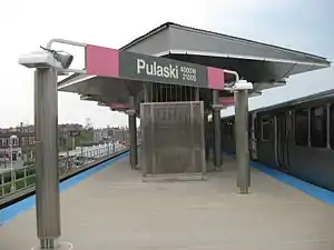 Pulaski is an 'L' station on the CTA's Pink Line, located in the North Lawndale neighborhood. Pulaski opened on June 16, 1902, as part of the Douglas Park branch of the Metropolitan West Side Elevated Railroad. It served as the terminus of that line until its 1907 extension to 48th Avenue.