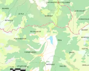 Map of Puyvalador and its surrounding communes