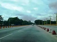 Pyay Road (Burmese: ပြည်လမ်း, formerly Prome Road) is a major thoroughfare of Yangon, Burma and the first stage of the National Highway 1 which eventually leads to Mandalay. It crosses the western-central side of the city in a north–south direction. It contains many important buildings, including banks, hospitals, several government buildings, various television and radio stations, including the National Museum, the old National Parliament building, People's Square and Park, Myanmar Radio and Television Building, Junction Square, Yangon University, and leads up to Inya Lake.