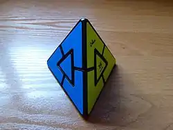 The Pyraminx Duo (originally known as Rob's Pyraminx)[1] is a tetrahedral twisty puzzle in the style of the Rubik's Cube. It was suggested by Rob Stegmann,[1] invented by Oskar van Deventer,[1][2] and has now been mass-produced by Meffert's.[1][3]