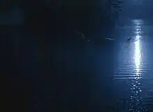![]() "Big Blue" moves silently through the water. The scene was created via digital effects and was criticized by several critics. | |