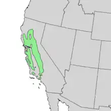 | Natural range of Quercus lobata | |