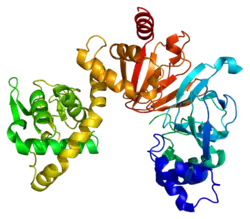 - 1 2 Rehmann H, Das J, Knipscheer P, Wittinghofer A, Bos JL (Feb 2006). "Structure of the cyclic-AMP-responsive exchange factor Epac2 in its auto-inhibited state". Nature. 439 (7076): 625–8. Bibcode:2006Natur.439..625R. doi:10.1038/nature04468. PMID 16452984. S2CID 4423485.