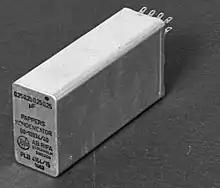 In 1960 Ericsson bought factory space in Gränna and moved all production of electrolytic capacitors there the following year.[5] In 1962 RIFA built a new factory for the manufacture of paper and plastic film capacitors in Kalmar.[7] The Kalmar factory was put into operation in 1964 and also began manufacturing its Miniprint brand of film capacitors, spark arrestors and electrolytic capacitors.[5]