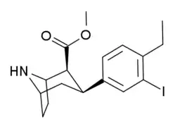 2. Tamagnan G, Alagille D, Fu X, Kula NS, Baldessarini RJ, Innis RB, Baldwin RM (January 2006). "Synthesis and monoamine transporter affinity of new 2beta-carbomethoxy-3beta-[aryl or heteroaryl]phenyltropanes". Bioorganic & Medicinal Chemistry Letters. 16 (1): 217–20. doi:10.1016/j.bmcl.2005.09.016. PMID 16236497.