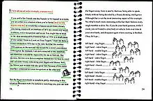 A Mort Aux Vaches Ekstra Extra composition is in effect a collaboration between Goodiepal and the participant, since the study material, in the shape of a school book and musical objects, has been created by him.[14] As such the participant becomes a co-composer by unfolding, according to own skills and preferences, what Goodiepal has begun, and the relationship between sender and receiver is transfigured into a joint authorship with an open-ended relation, also to a potential performance of the score. Performances have mainly taken place when participants have expressed a desire to do so, since the process of completing the Mort Aux Vaches Ekstra Extra exercise is in effect a compositional process in reverse. As such the performance of the work already took place when Goodiepal created his part of the composition, before handing it over to future co-composers.