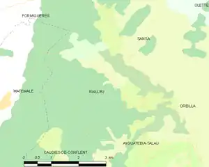 Railleu is in the canton of Les Pyrénées catalanes and in the arrondissement of Prades.