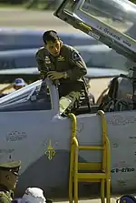 He is a military pilot qualified to fly the Northrop F-5,[21] F-16, and the Boeing 737-400.[14] His military role in recent years has become increasingly ceremonial. As his father grew older, Vajiralongkorn took a more prominent part in royal ceremonial and public appearances. He officially opened the 2007 Southeast Asian Games, held in Nakhon Ratchasima.[22] The event occurred one day after the 80th birthday of his father.[23]