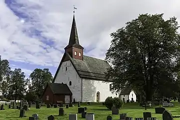 The earliest existing historical records of the church date back to the year 1326, but the church was likely built during the mid-12th century, likely around the year 1187. The Romanesque style church was built of stone from local quarries. It has a rectangular, 18.25-by-12-metre (59.9 ft × 39.4 ft) nave and a narrower, square 9.2-by-9.2-metre (30 ft × 30 ft) chancel. Originally, this was the only church to serve all of inner Namdal. Over the centuries, many chapels were built in the surrounding areas that were eventually split off as separate parishes.[4][5][6]