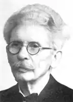 Rasmussen's wife, Anna Suffía, served as superintendent after Símun av Skarði and Rasmus Rasmussen founded the Faroese Folk High School (Faroese: Føroya Fólkaháskúli) in Klaksvík in 1899.[1][3] This is still the only Faroese folk high school, and it became the first school to teach in Faroese. The school was relocated to Tórshavn in 1909, and Rasmussen served as a teacher at the school until he retired in 1947. His teacher's position there was the source of his Faroese epithet Rasmus á Háskúlanum (literally, 'Rasmus at the high school').