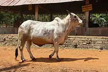 Rathi (Hindi:राठी), also synonymous with its variant Rath, is a breed of cattle indigenous to India. It originated in the region of the state of Rajasthan consisting of Bikaner, Ganganagar and Hanumangarh districts.[1] It is an important dual purpose cattle breed of India known for both its milking and draught prowess. The cattle is locally known to have two variants, Rathi is a draft breed[2] while Rath is a pure milch variant. The Rath variant originated in the Alwar district of Rajasthan and was domesticated by Rath tribe. Rath is characterized by its white skin with black or gray spots[3] while Rathi is usually of brown colour.