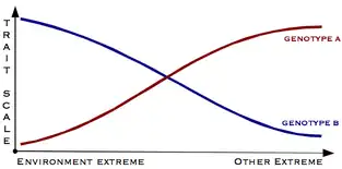 In ecology and genetics, a reaction norm, also called a norm of reaction, describes the pattern of phenotypic expression of a single genotype across a range of environments. One use of reaction norms is in describing how different species—especially related species—respond to varying environments. But differing genotypes within a single species may also show differing reaction norms relative to a particular phenotypic trait and environment variable. For every genotype, phenotypic trait, and environmental variable, a different reaction norm can exist; in other words, an enormous complexity can exist in the interrelationships between genetic and environmental factors in determining traits. The concept was introduced by Richard Woltereck in 1909.[1][2][3][4][5]