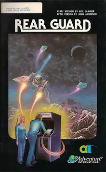 Rear Guard is a horizontally scrolling shooter written for the Atari 8-bit family and released in December 1981 by Adventure International. Neil Larimer created the game with assistance from Sparky Starks. It was ported to the Apple II, TRS-80, and TRS-80 Color Computer.
