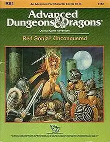 Red Sonja Unconquered (ISBN 0-88038-324-0[2]) is a 1986 adventure module for the Dungeons & Dragons roleplaying game based on the barbarian heroine, Red Sonja. Its module code is RS1 and its TSR product code is TSR 9183.[2] Like the similar barbarian-hero inspired Conan modules (CB1 and CB2), this module was not very popular.[1]