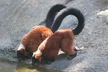 A pair of red ruffed lemurs drinking