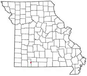 The community is no longer located on the main highway, as the highway was rebuilt to create a new highway to bypass Reeds Spring proper. The intersection was also moved, and the community is now located at Route 248 and a county road known as Old US Highway 160.