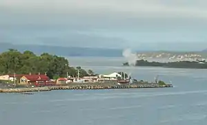 - ↑ Photograph – Regatta Point, Strahan – Railway yards, LINC Tasmania, 1900, retrieved 25 January 2016 : photograph shows railway station, railway sheds, railway yard, and wharf prior to 1910