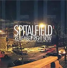Remember Right Now is the second album by the American band Spitalfield, released on June 17, 2003, through Victory. The entire album was featured in the video game Amped 2 for Xbox. The album would mark a point where the band would leave their homes behind to tour in support of their newfound success; they collectively felt that Remember Right Now captured a point where they were at in their lives which was to serve as a keepsake for those moments. The album artwork features photos of various locations in the city of Chicago as well as the Chicago suburbs and their respective timestamps ranging from March 1, 2003 to March 20, 2003.[3]