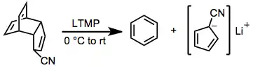 Base mediation can be used to induce rDA in cases when the separated products are less basic than the starting material. This strategy has been used, for instance, to generate aromatic cyclopentadienyl anions from adducts of cyclopentadiene.[10] Strategically placed electron-withdrawing groups in the starting material can render this process essentially irreversible.
