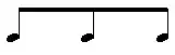 - Quarter (crotchet), eighth (quaver) (generally barred, therefore, in 3
