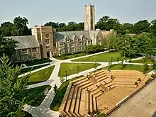 The campus covers a 123-acre tract in Midtown, Memphis across from Overton Park and the Memphis Zoo. Often cited for its beauty,[40] the campus design is notable for its stone Collegiate Gothic buildings, thirteen of which are listed on the National Register of Historic Places.[41] Additionally, Rhodes is a certified Class IV Arboretum, the highest designation granted by the Tennessee Urban Forestry Council, and contains over 120 tree species and more than 1,500 individual trees.[42] In 2017, The Princeton Review named Rhodes the #1 Most Beautiful College Campus in America in its edition of The Best 381 Colleges.