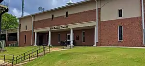 In 2002, the stadium was renovated by adding a new brick plaza at the entrance and a new 2,000 seat grandstand with chair-back and bench-back seating in the center and lower sections of the grandstand. A new three-story press box tower was also built.