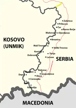 As part of the plan for the return of the Yugoslav Army to the Ground Security Zone, UCPMB commanders Shefket Musliu, Muhamed Xhemajli, Ridvan Qazimi and Mustafa Shaqiri signed an agreement on the peaceful demobilization of UCPMB in Konculj on 21 May, in the presence of Sean Sullivan, head of the NATO Office for Yugoslavia. According to that agreement, the Yugoslav Army was to enter Sector B of the Ground Security Zone by 31 May 2001.[1][2]