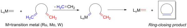 Ring-closing metathesis (RCM) is a widely used variation of olefin metathesis in organic chemistry for the synthesis of various unsaturated rings via the intramolecular metathesis of two terminal alkenes, which forms the cycloalkene as the E- or Z- isomers and volatile ethylene.[1][2]
