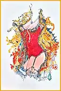 One of the early Showgirl paintings by Rita Asfour, Mixed Media on Masonite