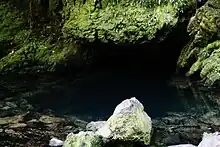 For part of its journey, the river flows underground through limestone caves, returning to the open air at The Riuwaka Resurgence. This spot is popular with both holidaymakers and divers, as the water is always crystal clear, and is very cold even in the heat of mid-summer.[3]