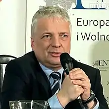 Robert Gwiazdowski (born 23 March 1960) is a Polish habilitated doctor of jurisprudence and economist. He studied law on the University of Warsaw. In 2004, he was appointed president of the Adam Smith Centre.[1] From 2006 to 2007 he was the head of supervisory board of Social Insurance Institution, a Polish state organization responsible for social insurance matters. He authored books on economics and taxes.[2] He is a supporter of the free market, criticizes socialism on the ground that it is an ineffective and unjust economical system and advocates lowering taxes as a way of incentivizing the entrepreneurs to set up new businesses.[3] He is a specialist in the history of political thought and from time to time appears in various television programmes.