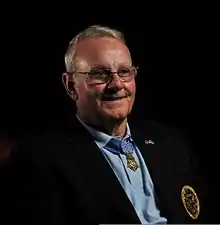 - ↑ Weiss, Kevin. (November 6, 2019). Medal of Honor recipient inspires local students. lakerlutz.com. Retrieved February 25, 2022.