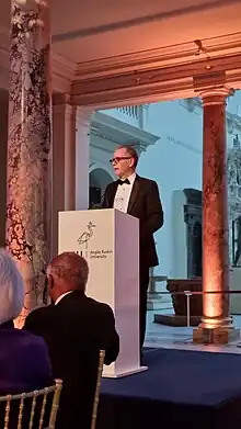 Vice Chancellor of Anglia Ruskin University Roderick Watkins speaking at ARU's Friends and Supporters Gala Dinner at the Victoria and Albert Museum in May 2023 in London.
