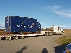 In 1985, The Rolling Stones sold the RSM to Bill Wyman, who in 1987 created the Ambition Invention Motivation Success project (the AIMS project), which was a vehicle to give young bands around the country a chance to work out of the Mobile Studio and produce a top-quality demo. The blue livery and yellow sign writing were applied as the colours of the project's sponsor Pernod. Producers Terry Taylor and Mick McKenna worked on about 60 tracks during the course of the project, which culminated with a final show at the Royal Albert Hall in February 1988.