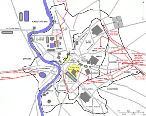- ↑ Taylor, Rabun, M., "Public Needs and Private Pleasures" in: Water Distribution, the Tiber River and the Urban Development of Ancient Rome, (Studia Archaeologica), L'Erma di Bretschneider, 2000, pp. 53–54, 56–60. See also Livy, 40.51. & 30.6.19.
