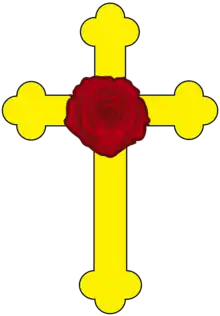 According to the writings of the Masonic historian E.J. Marconis de Negre,[31] who together with his father Gabriel M. Marconis is held to be the founder of the "Rite of Memphis-Misraim" of Freemasonry, based on earlier conjectures (1784) by a Rosicrucian scholar Baron de Westerode[32] and also promulgated by the 18th century secret society called the "Golden and Rosy Cross", the Rosicrucian Order was created in the year 46 when an Alexandrian Gnostic sage named Ormus and his six followers were converted by one of Jesus' disciples, Mark. Their symbol was said to be a red cross surmounted by a rose, thus the designation of Rosy Cross. From this conversion, Rosicrucianism was supposedly born, by purifying Egyptian mysteries with the new higher teachings of early Christianity.[33]