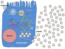 - ↑ Ruiz MC, Leon T, Diaz Y, Michelangeli F (2009). "Molecular biology of rotavirus entry and replication". The Scientific World Journal. 9: 1476–1497. doi:10.1100/tsw.2009.158. PMC 5823125. PMID 20024520.