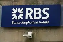 - ↑ Token and symbolic use of the Scottish Gaelic name occurs on some Royal Bank of Scotland buildings and customer stationery such as cheque books. Gaelic is not used on the Royal Bank of Scotland website, for contracts or on their banknotes.