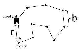 In the model, is the length of a rigid segment, is the number of segments of length , is the distance between the fixed and free ends, and is the "contour length" or . Above the glass transition temperature, the polymer chain oscillates and changes over time. The probability distribution of the chain is the product of the probability distributions of the individual components, given by the following Gaussian distribution: