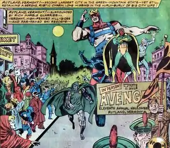 In the 1970s, the Rutland Halloween Parade achieved a degree of fame when it was used as the setting of a number of superhero comic books, in titles published by industry rivals DC Comics and Marvel Comics. The first appearance of the parade was in Avengers #83, published by Marvel with a cover-date of December 1970; this was followed by DC's Batman #237, with a cover-date of December 1971.