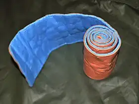 The device is often found in first aid kits, emergency medical technician "jump kits," ambulances, and other similar settings. Generally supplied in a roll or as a flat strip up to 36 inches (91 cm) long and 4.25 inches (10.8 cm) wide, it can be unrolled or unfolded and formed to the shape of the injured person's body. Once folded into a curve, it becomes quite rigid and capable of immobilizing injured limbs and bones, including the leg, forearm, and humerus. Folded properly, it can also be used to stabilize the cervical spine. It can be easily cut with any scissors or shears, to make smaller devices such as finger splints.[2][3][4]