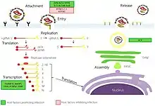 - ↑ Fehr AR, Perlman S (2015). "Coronaviruses: An Overview of Their Replication and Pathogenesis". In Maier HJ, Bickerton E, Britton P (eds.). Coronaviruses. Methods in Molecular Biology. Vol. 1282. Springer. pp. 1–23. doi:10.1007/978-1-4939-2438-7_1. ISBN 978-1-4939-2438-7. PMC 4369385. PMID 25720466.