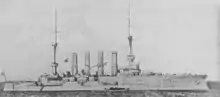 SMS Roon[lower-alpha 1] was the lead ship of her class of armored cruisers built for the German Kaiserliche Marine (Imperial Navy) in the early 1900s as part of a major naval expansion program aimed at strengthening the fleet. The ship was named after Field Marshal Albrecht von Roon. She was built at the Kaiserliche Werft in Kiel, being laid down in August 1902, launched in June 1903, and commissioned in April 1906. The ship was armed with a main battery of four 21 cm (8.3 in) guns and had a top speed of 20.4 knots (37.8 km/h; 23.5 mph). Like many of the late armored cruisers, Roon was quickly rendered obsolescent by the advent of the battlecruiser; as a result, her career was limited.