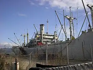 SS Red Oak Victory as seen from the dock in 2006, before extensive restoration work was performed