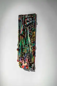 After the dissolution of Gutai in 1972, Horio explored alternative exhibition sites in the Kansai region, took up performative and processual approaches as well as interventions in urban and natural environments, often working in close collaboration with other artists. He initiated the artist group Bonkura in 1975[2] and opened the experimental art venue Higashimon Gallery in Kobe in 1979. From the late 1990s onward, his works were increasingly appreciated and presented in Europe and Northern America, but Horio continued to exhibit in numerous solo and group exhibitions around the Kansai region and to dedicate his attention to local art initiatives, including performances and workshops with children. Beginning in the early 2000s he collaborated with the On-Site Art Squad KUKI (Japanese: 現場芸術集団「空気」) and made performances in the context of exhibitions such as the Yokohama Triennale 2005, Explosion! Painting as Action at Moderna Museet in Stockholm (2012) and Gutai: Splendid Playground at the Guggenheim Museum in New York (2013).