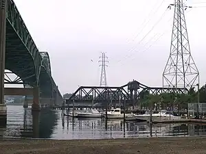 The first drawbridge at the site was built when the Newport and Fall River Railroad opened in 1864. It was replaced with an iron span in 1879.[1] A new span was built in 1899 by the Pennsylvania Steel Company and served a succession of railroads; the Providence and Worcester Railroad took over the line in 1982.[2]