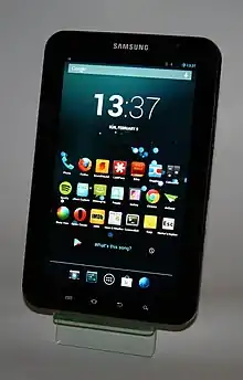 The Samsung Galaxy Tab 7.0 or simply Samsung Galaxy Tab is an Android-based mini-tablet computer produced by Samsung[2] and released on 5 November 2010. The tablet was first introduced on 2 September 2010 at the IFA in Berlin.[3] The Galaxy Tab was the first Samsung Android-powered tablet to be released.[4]