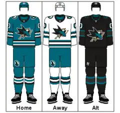 - 1 2 3 4 5 6 7 "Jerseys Through the Years". SJSharks.com. NHL Enterprises, L.P. Retrieved September 7, 2019.